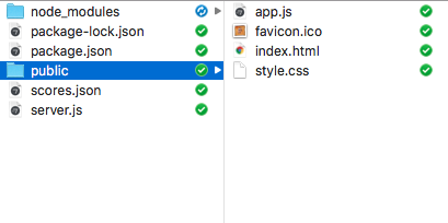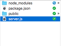 The first step to creating any web project is building your folder architecture. Create a folder to hold this entire project, and inside that folder create a folder called "public". You'll create a server.js file inside this project folder, and the "public" folder will contain the web files served up by your server (the "frontend"): index.html and your .js and .css files. Right now, your folder architecture should look like this:
