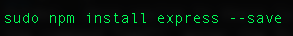 The "sudo" prefix stands for "super-do", and will require you to enter your password. You may not need this command depending on the user settings on your computer, but it's safe to use it here. The "npm install express" is the command to install express, and the "--save" suffix tells the installer to write this "dependency" to the package.json file. You package.json file should now be updated to include this dependency, and you will have a new "node modules" folder in your project folder.