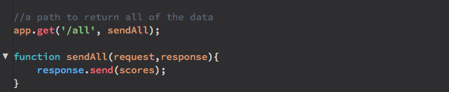 The final thing to add to the server is a function that simply returns all of the data when the /all path is followed. Add the following at the end of your server.js