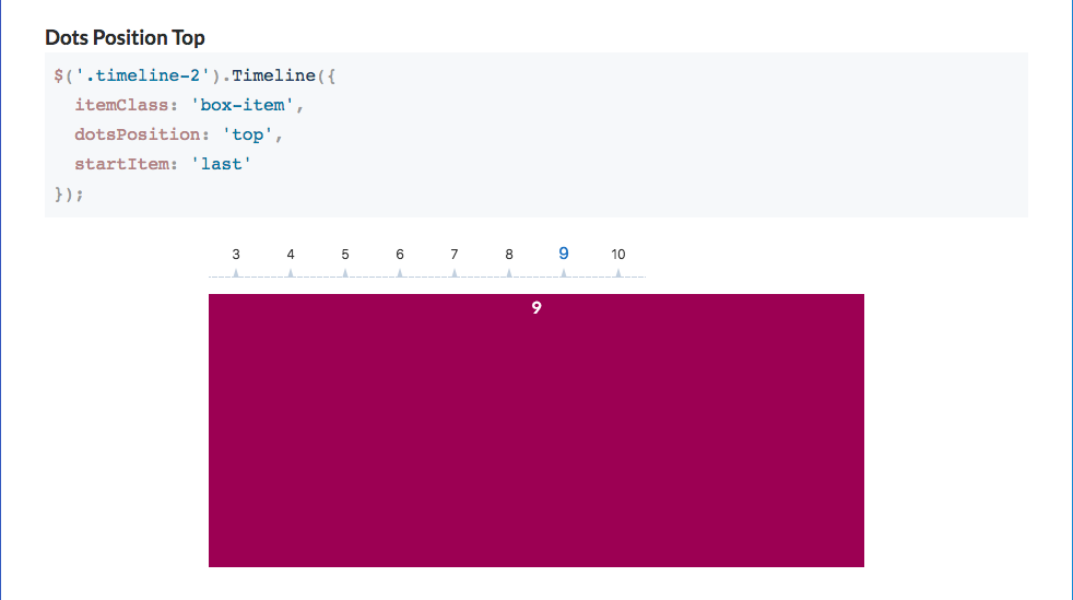 In my JS plugin research I found a JQuery-dependent plugin called timeline.js. (the downloads and extended docs are here) Timeline js essentially helps you create an image slider, with the navigation tied to a clickable and hoverable menu. The javascript works by hooking to the data-time attribute of the div elements that are children of the "timeline js-timeline" classed div, and contain the content for each point on the "timeline". You can make the "data-time" attribute any string you like and it will be injected as the text content of the menu. It also has functionality to make the navigation clickable or hoverable.
